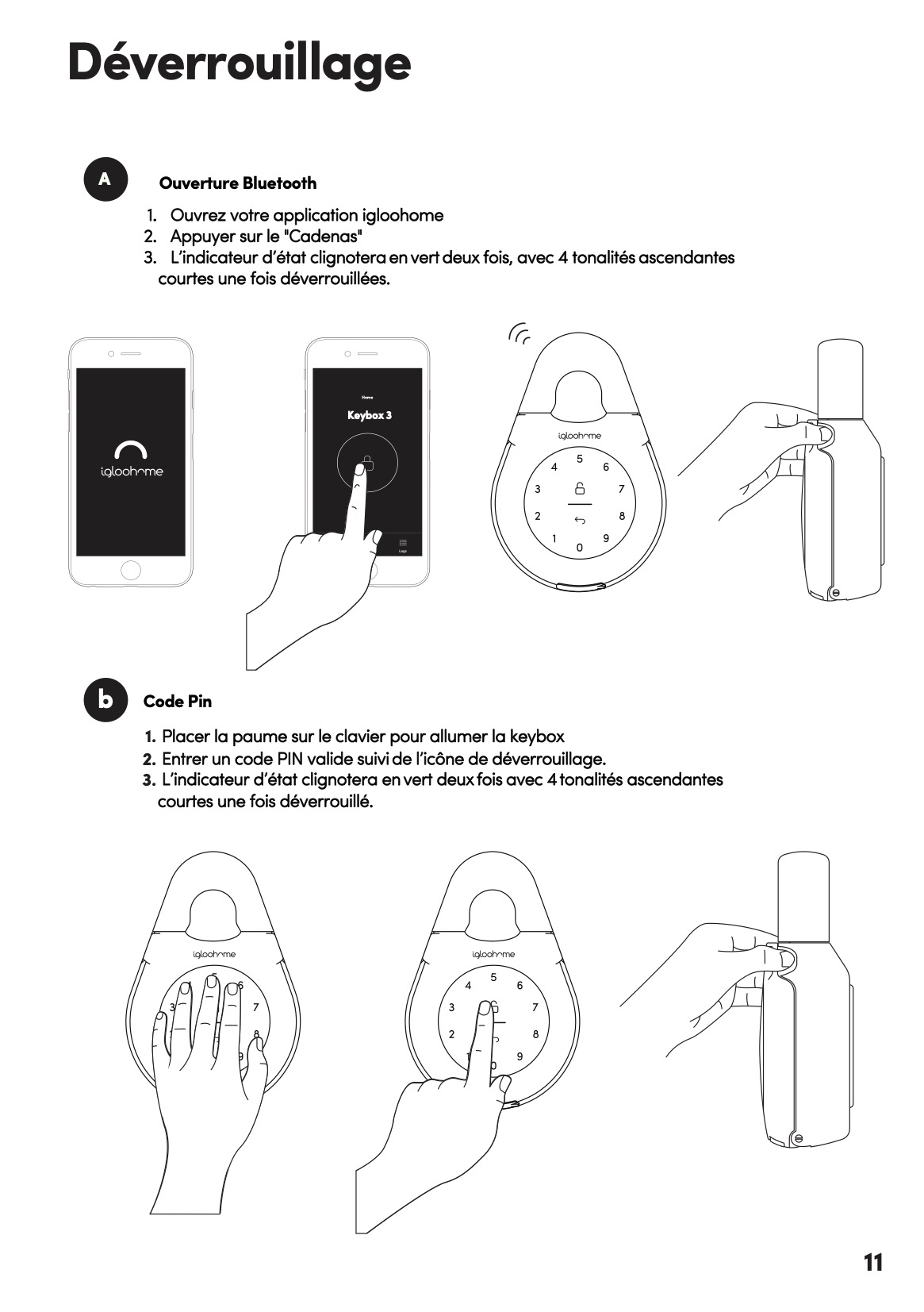 La clĂ© Bluetooth est un moyen alternatif dâouvrir la boĂźte Ă clĂ©s : il suffit dâutiliser votre appareil mobile Ă portĂ©e pour la dĂ©verrouiller (option non applicable pour le moment)